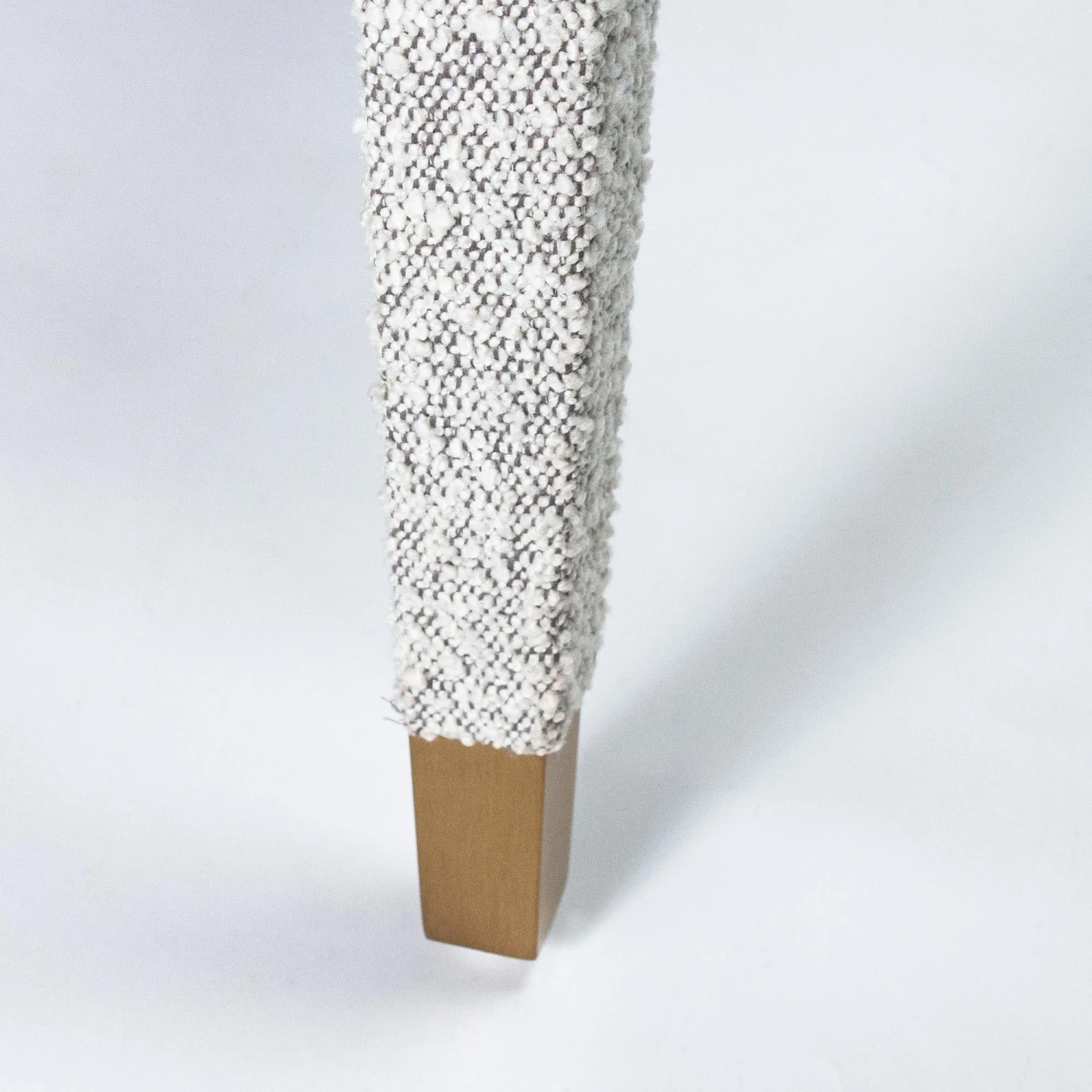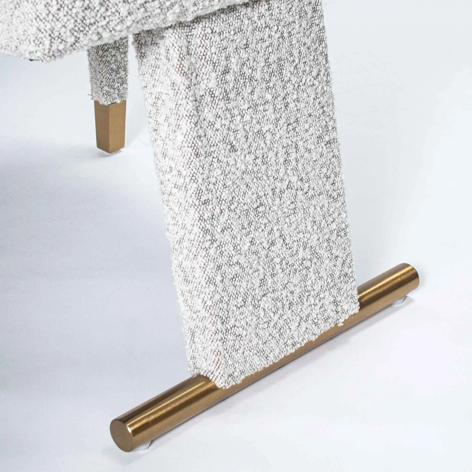 Our Coty Dining Chair in Grey Boucle provides all of the modern interest you want with the softness of boucle fabric. We love the brass accents and its sleek, simple design.