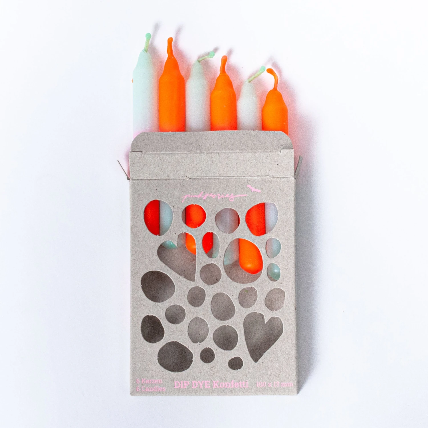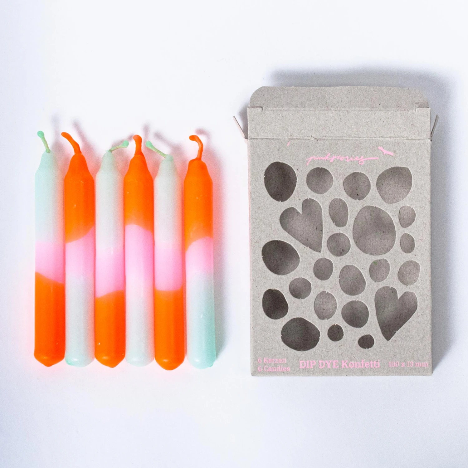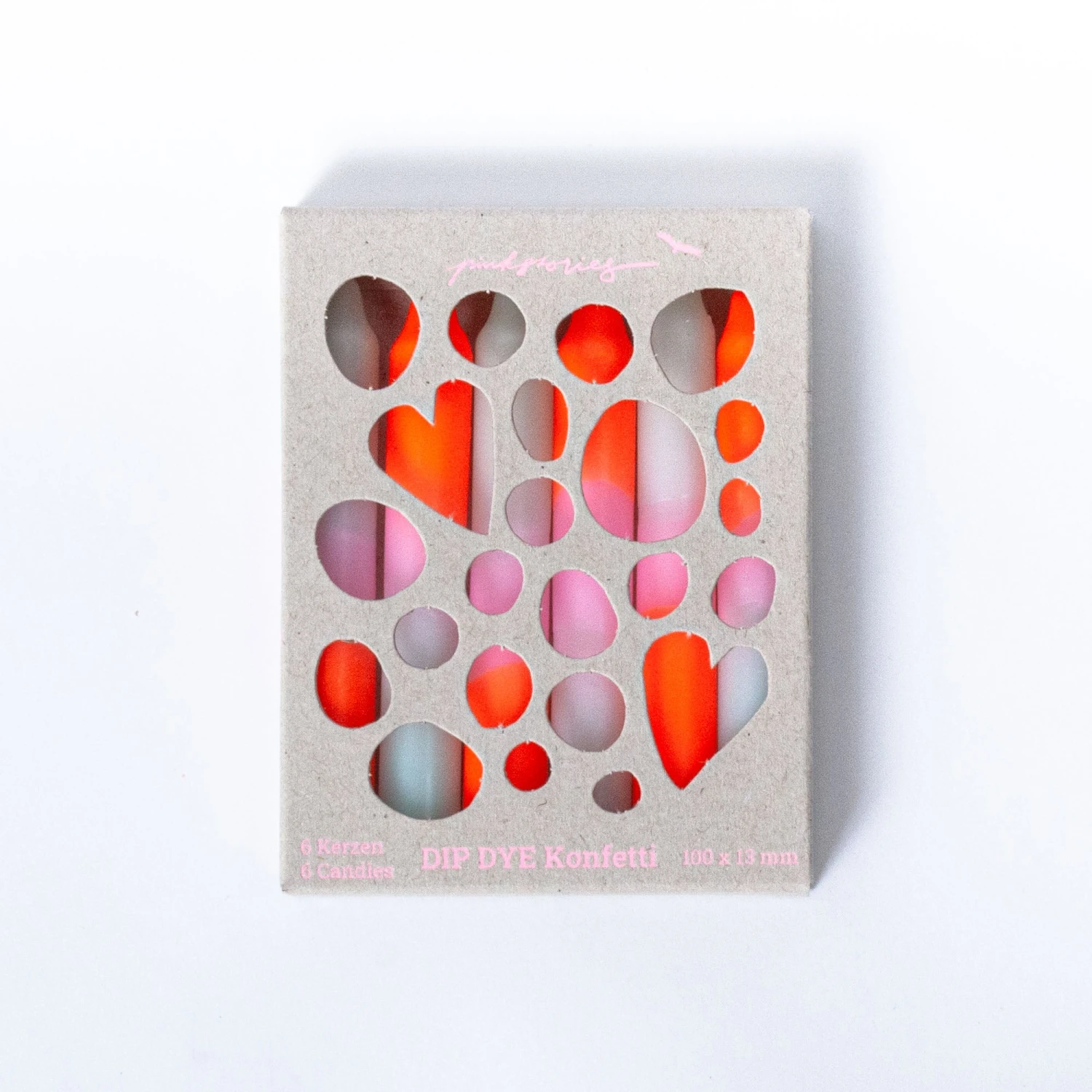 Set of six lovingly hand-dyed birthday candles in shades of pink. While the colors remain the same, the patterns vary with each candle and make each one unique.