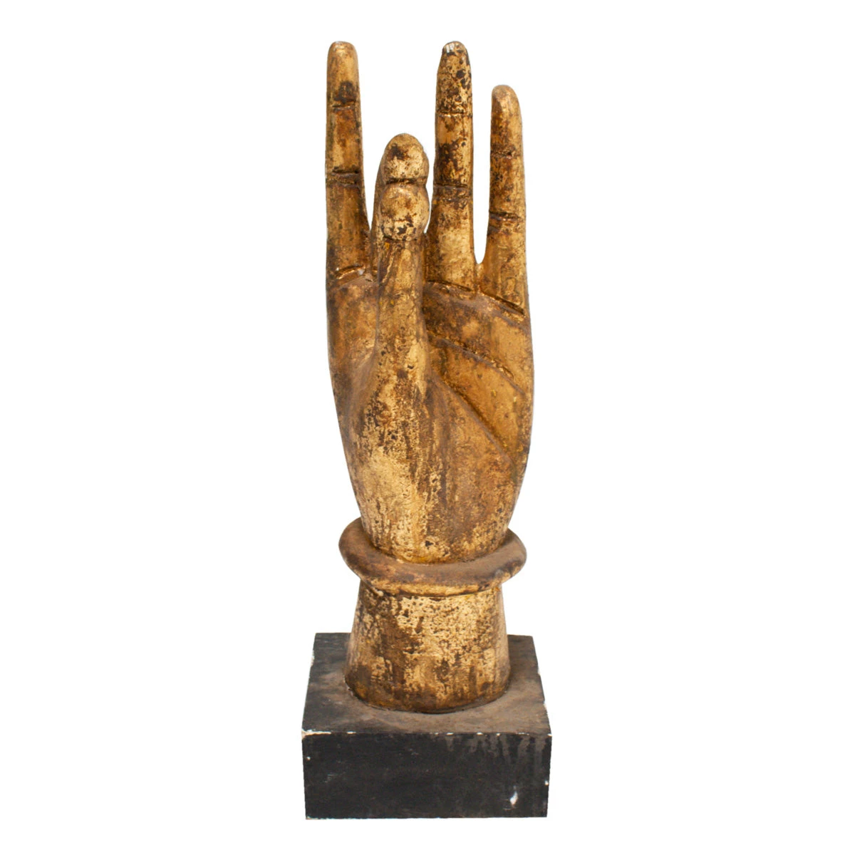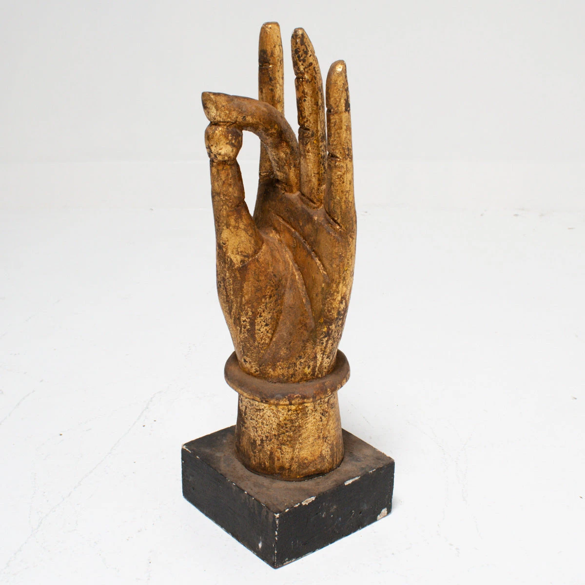 Gold leaf wood hand gesturing “OK.” It’s a fun accent piece, okay?!