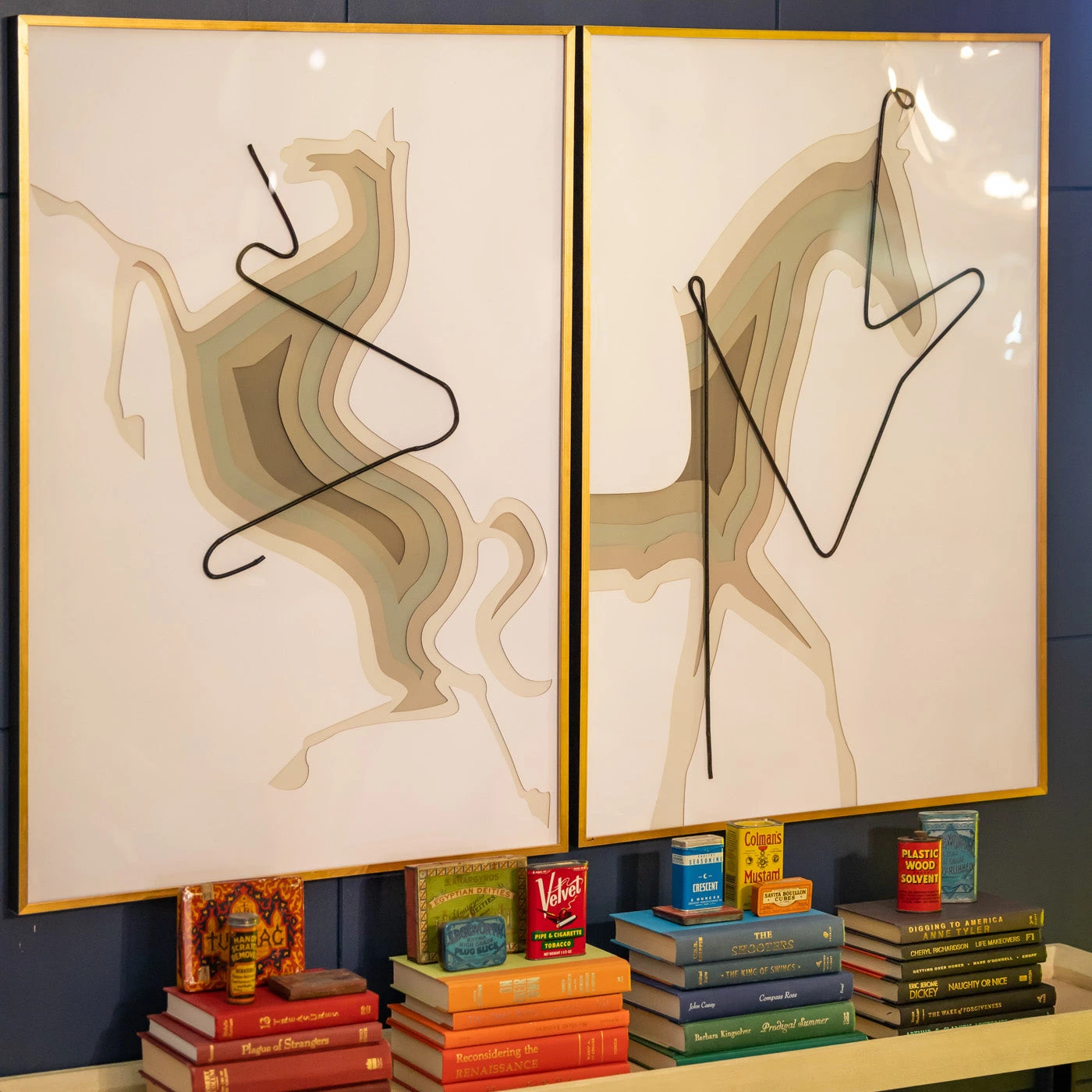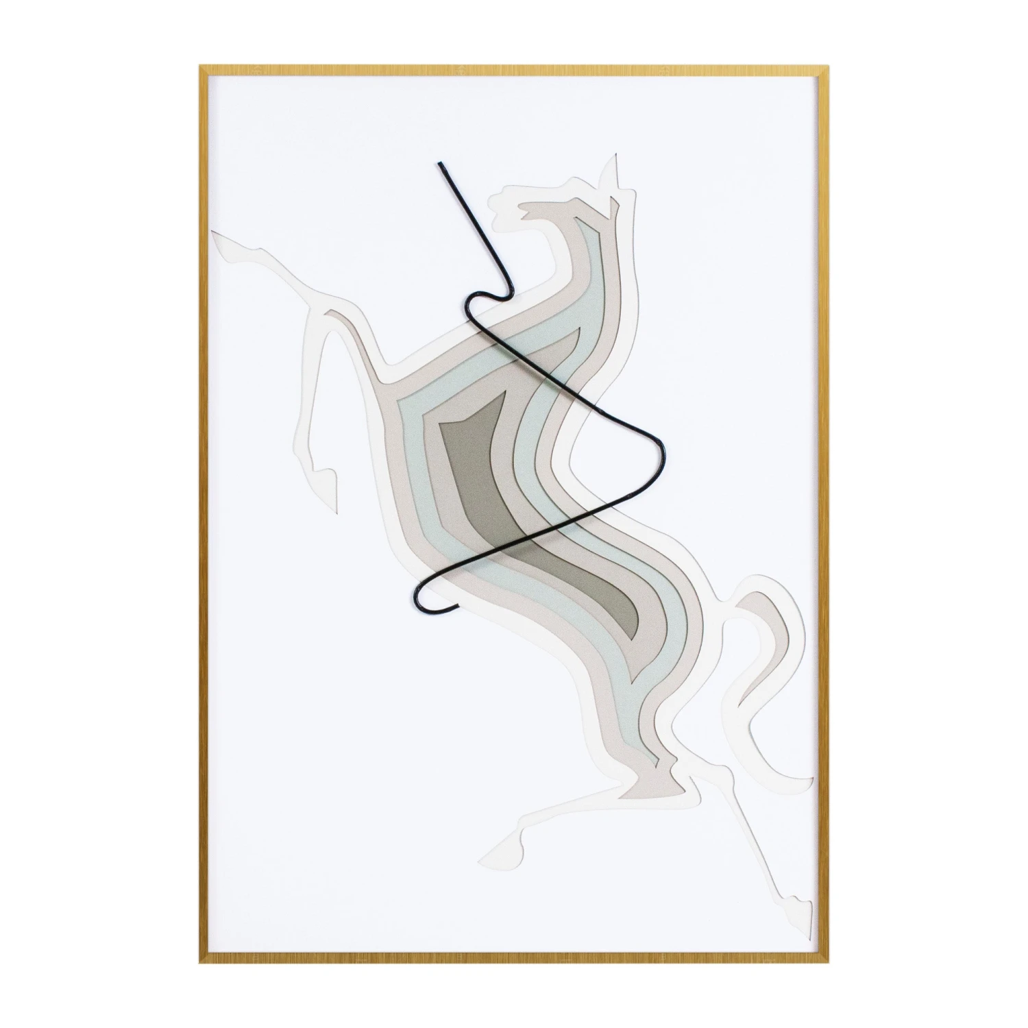 Majestic and intriguing. This simple but stunning piece is perfect in any home. Hand cut pieces shaped like a horse and framed in a gold frame.