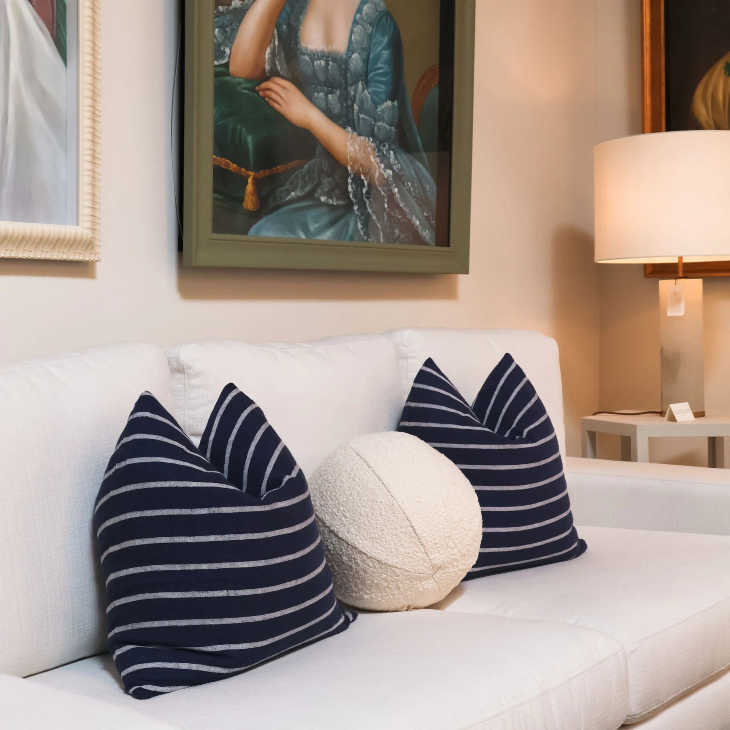 This round pillow brings on the visual intrigue with soft boucle and sectioned stitching. Ivory fabric brings a clean and luxe feel to this go-anywhere accent.