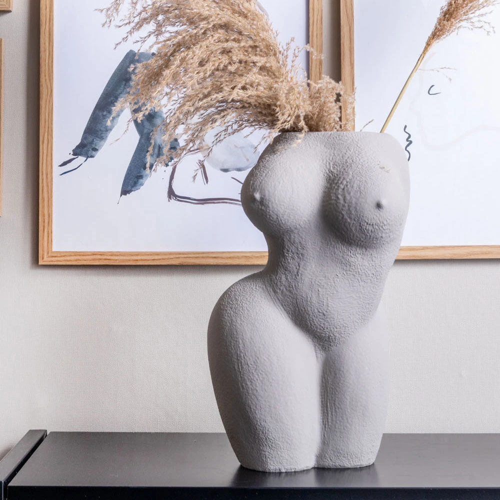 This standing lady pot is a true work of art. Feminine shapes and polyresin combine in this artful plant pot that doubles as a vase.