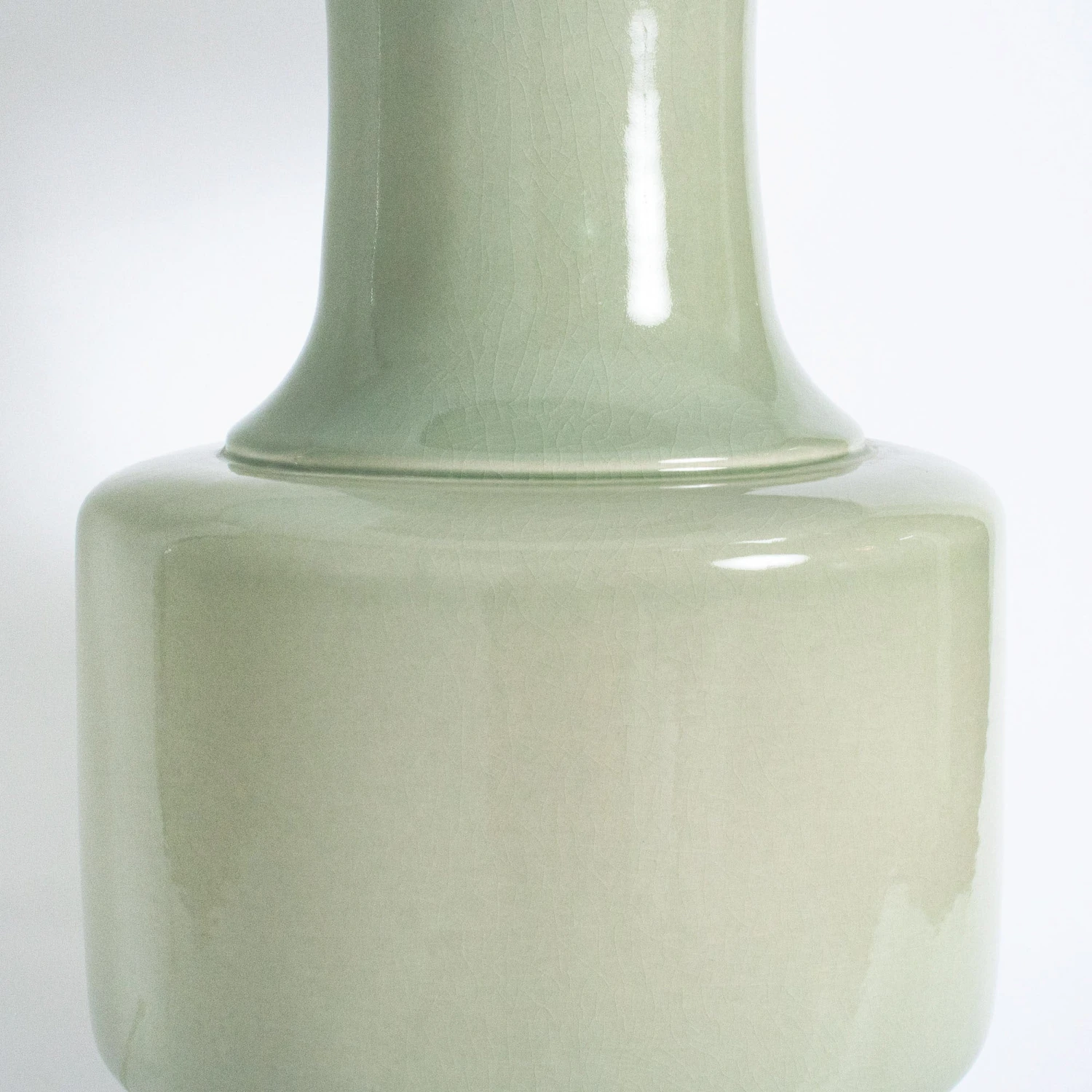 Artfully aesthetic. Handmade in Dallas, this artisan lamp features a beautiful Celadon glaze over a crackle under-glaze. An acrylic base and finial complete the contemporary look.