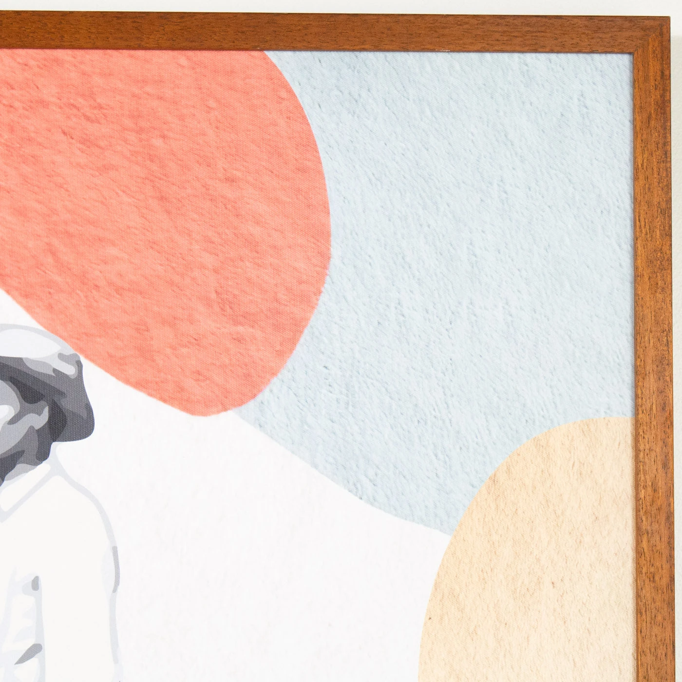 New from the Tat Frederick studio, Pierre’s Place features a cowboy with his horse, surrounded by a vibrant painterly border. Printed on canvas and framed in wood.