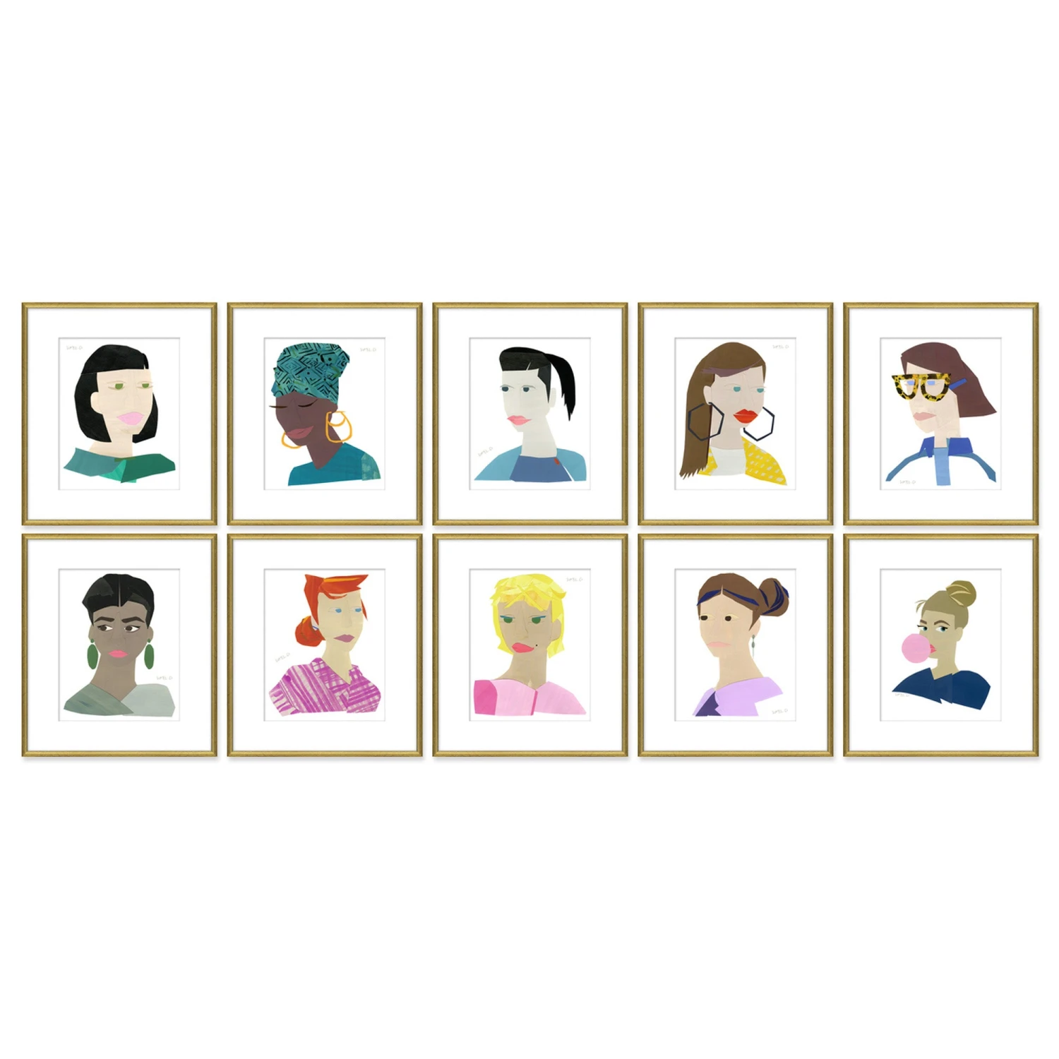 Colorful giclée print of a portrait created by Susan Hable. ‘Portrait Series – Jade‘ is printed on archival paper and framed in a black and gold frame.