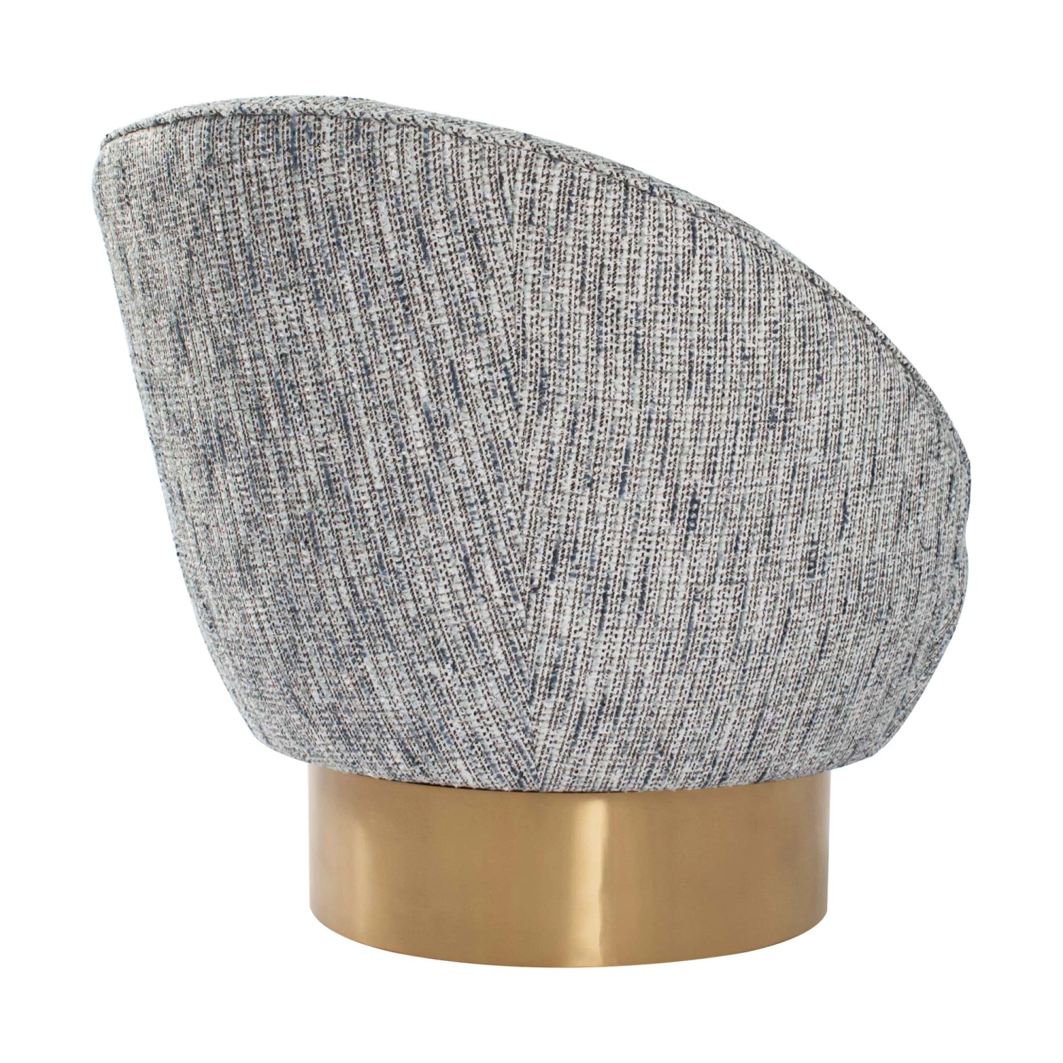 Plush and posh, our Rainmaker Swivel is now in a tweed fabric. A curvy back and brass base means this swivel is rich in style. Don’t forget to buy the left version of this chair to complete the set!