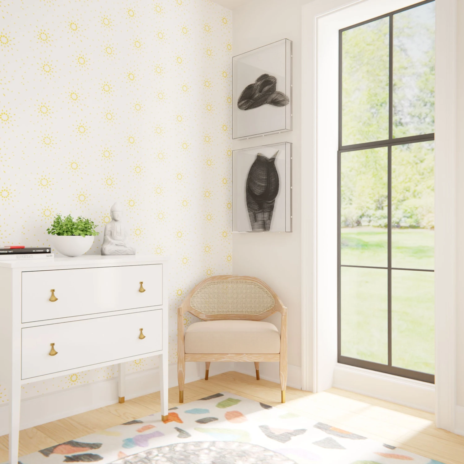 Bursting with flower power energy, the Star Flower Wallpaper will create subtle whimsy in your home. Mitchell Black wallpaper designed exclusively for Scout Design Studio. Every order is custom printed for color consistency.